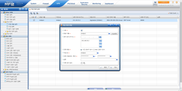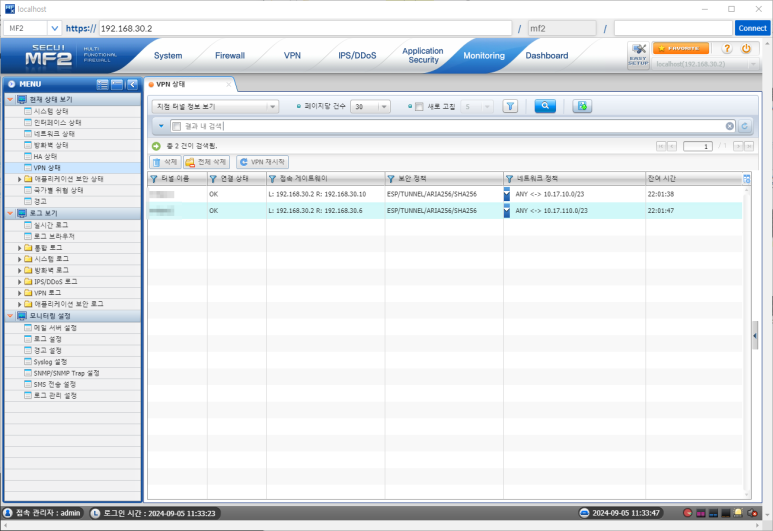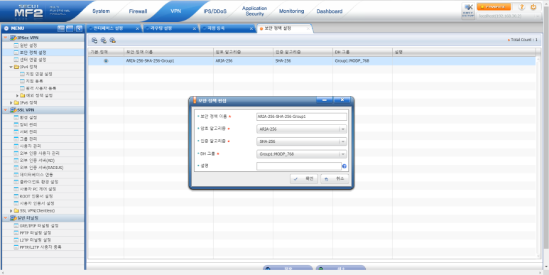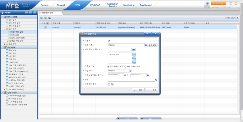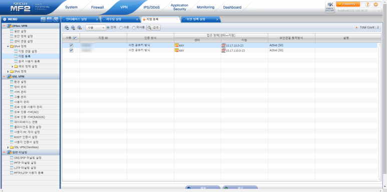 방화벽 정책 설정(IPSec 서비스객체를 허용해주기 위함)