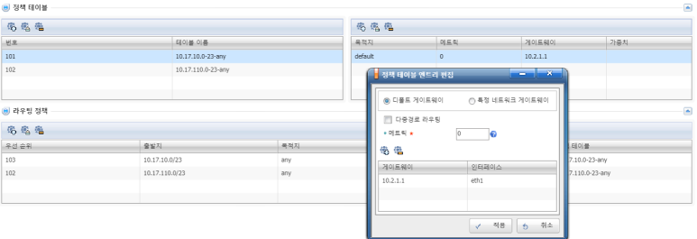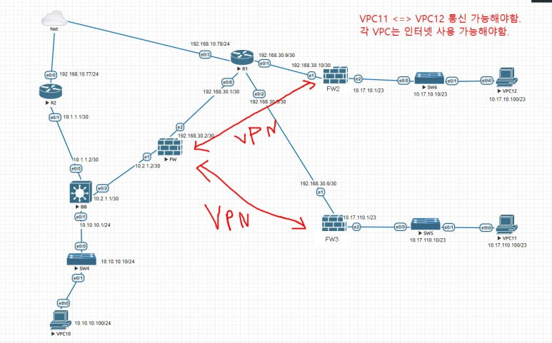 보안 정책 설정(FW, FW1, FW2 모두 동일하게 설정)